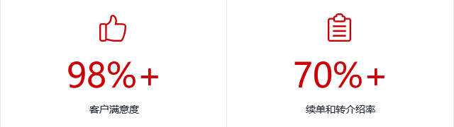 客户满意度达到98%以上,续签和转介绍超过70%的咨询和培训公司。