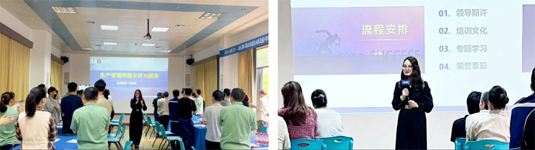 凃总在开营仪式上表达了公司对此次训练营成果的期许,希望大家带着问题、带着使命参与培训,结合产品损耗、报废率、产品品质等生产相关数据,认真思考生产流程中可能存在的问题,在训练营中进行查缺补漏。同时,希望所有参训学员保持空杯心态,在培训中持续提升技能,将课程所学知识转化为公司经营结果,为公司创造价值的同时实现自我成长与能力提升。