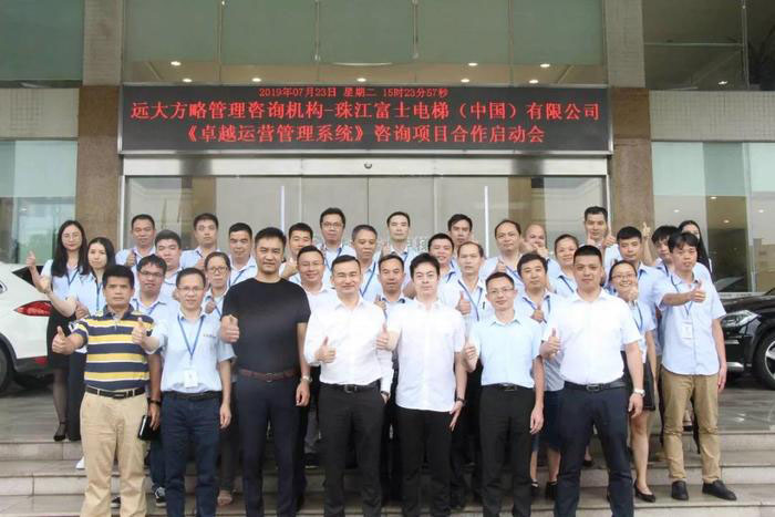 2019年7月,珠江富士电梯(中国)有限公司(以下简称“珠江富士电梯”)携手远大方略管理咨询公司启动《集成运营管理系统》改善项目。远大方略项目总监姚老师、项目咨询师冯老师、罗老师入驻珠江富士电梯,通过对珠江富士电梯公司的深入调研与探讨,本期项目主要围绕战略规划与经营计划、组织架构优化与责权利系统构建、营销管理模式打造、核心业务流程梳理、目标与数据信息体系构建、自主运营体系构建等展开改善。