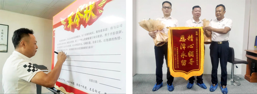 总结会上,公司高层为项目老师颁发了锦旗并为优秀小组与个人颁发了奖杯,李总带领大家在军令状上签字,进一步坚定大家持续变革的决心和信心。