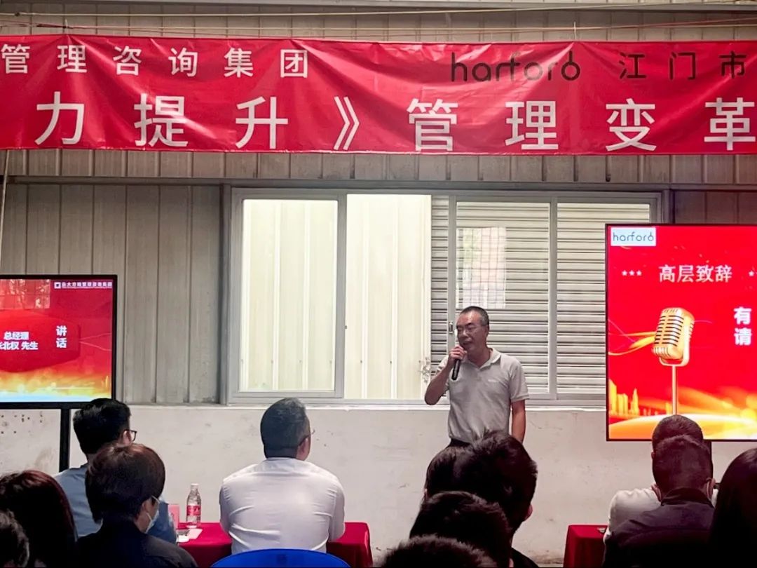 老师还结合浩盈所在行业的发展趋势与公司生产经营现状,详细讲解了此次变革的计划。此次项目配备了专业的模块老师,将会分阶段、分模块,从企业使命愿景梳理、中长期战略规划,到年度经营目标制定和分析、组织架构重塑、晋升通道设计、薪酬绩效迭代、NPI导入优化、供应链系统构建、精益生产等各方面,持续提升各层级组织能力,用高效组织保障公司战略落地,推动业绩稳健增长。