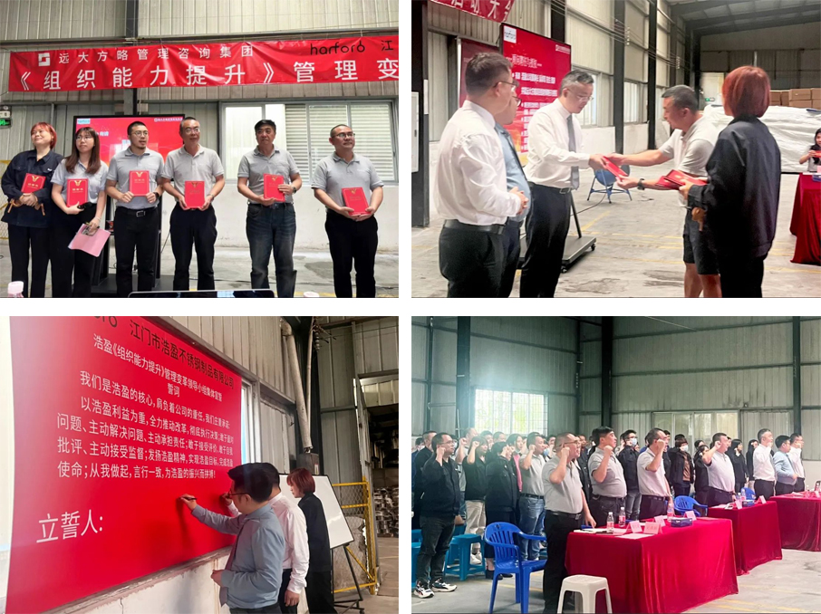 江门市浩盈不锈钢制品有限公司(以下简称“江门浩盈”)携手远大方略启动《组织能力提升》咨询项目,全方位提升组织能力,形成高效的运营管理模式,持续提升公司生命力。