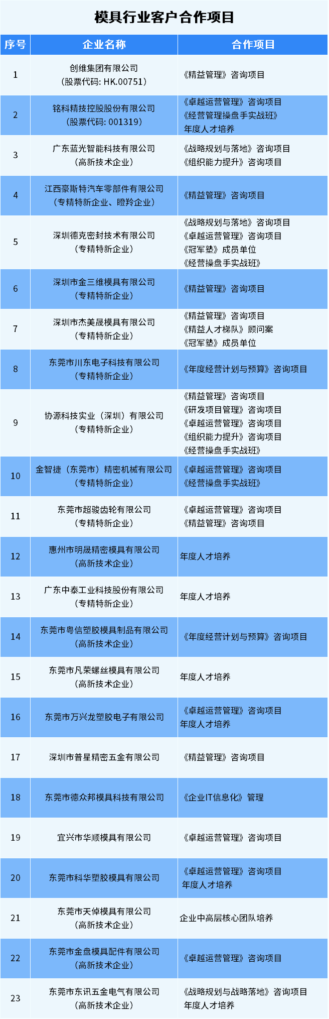 远大方略精准剖析模具行业发展现状和痛点,为众多模具企业赋能,持续开展针对性咨询项目: