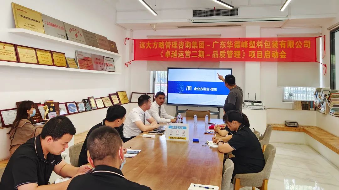 近日,广东华德峰塑料包装有限公司(以下简称“华德峰”)再度携手远大方略启动《卓越运营二期-品质管理》咨询项目,建立科学有效的质量管理体系,提升企业质量管理水平,提高产品质量,提高客户满意度,从而赢得市场份额。