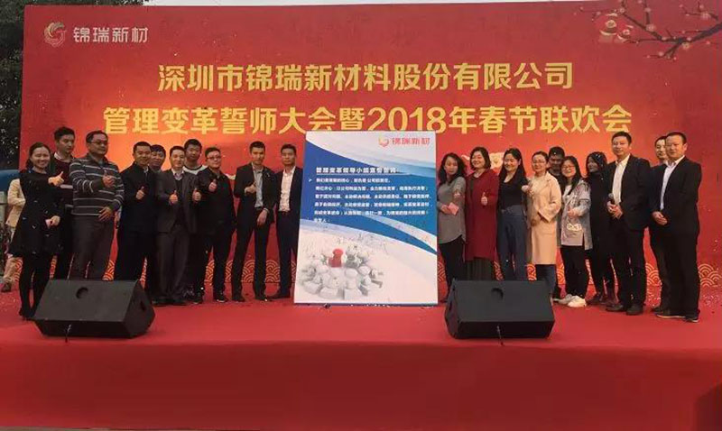 2018年7月31日,深圳锦瑞新材股份有限公司(以下简称“锦瑞新材”) 股票代码:832287 管理咨询变革项目召开项目总结大会。总结大会中,顾问老师和公司的核心团队分别回顾了6个月的变革过程中所取得的成绩和体会;并总结了项目过程中的不足之处,明确后续持续改善的重点。项目在大家的共同努力下,取得了些许进步,全员的观念和习性整体有了很大的提升,整个团队分析问题、解决问题、预防问题的能力也得到了很大的提升。
