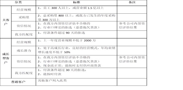 (4) 建立深圳市誉恒达科技有限公司客户分类分级标准,具体标准如下: