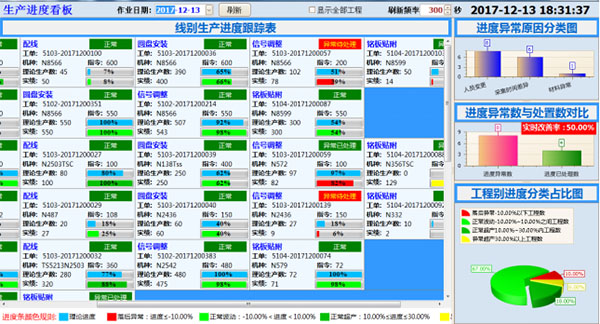 远大方略科技MES系统通过部署DCT、DCN等实时数据采集终端、PC采集、数据文件手动导入等方式,实时采集生产现场的生产进度、生产状态、备料上料、物料、、设备测试与维修、物料质检抽检、重工等各种生产数据,并及时进行整合分析、汇报。
