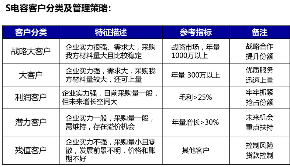2、明确了电容业务战略重点,包括重点市场、重点产品、重点客户,进行了电容业务战略布局,帮助企业建立了科学的大客户销售服务模式。
