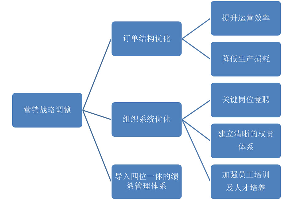 3、对营销战略进行梳理,并配套以订单结构优化、组织系统优化、绩效体系导入,最终实现战略营销破局。