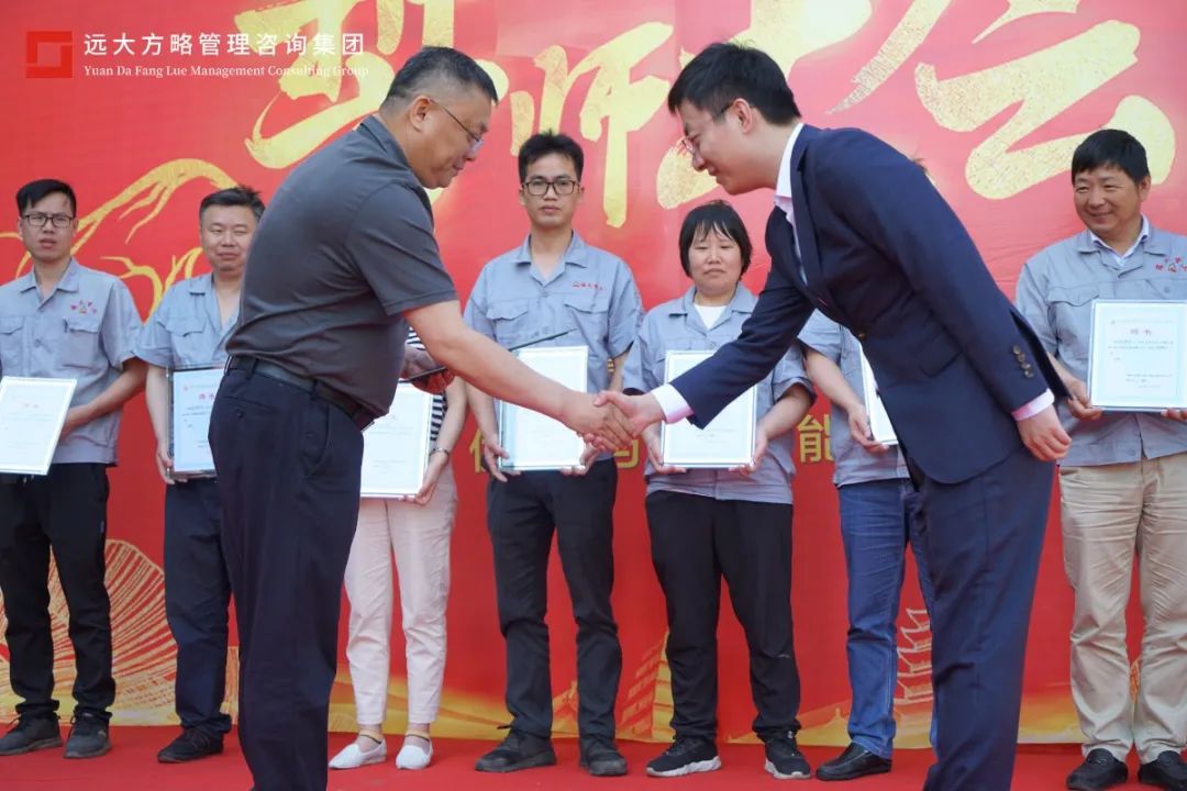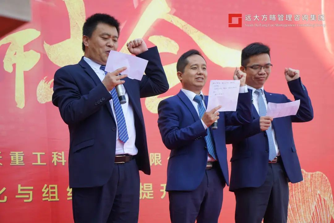 任正非说,产品发展的路标是客户需求导向,企业管理的目标是流程型组织建设。此次变革就是增强组织能力,提高企业的管理水平和竞争力,支撑公司战略目标的实现。针对变革,老师有方法和工具,但是需要大家一起携手将方案有效落地,推动此次变革的顺利进行。会上远大方略项目组老师也上台进行了宣誓,必将全力以赴做好此次海天重工的项目改善,助力企业更成功。