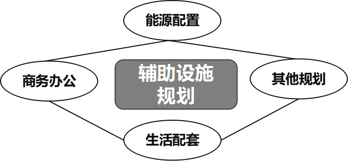 辅助设施规划不仅仅包含了水、电、气等与生产息息相关的项目,还包含商务办公、工业旅游、生活服务、人文关怀、休闲娱乐等与企业稳定发展的各项模块,常见辅助设施规划项目如下: