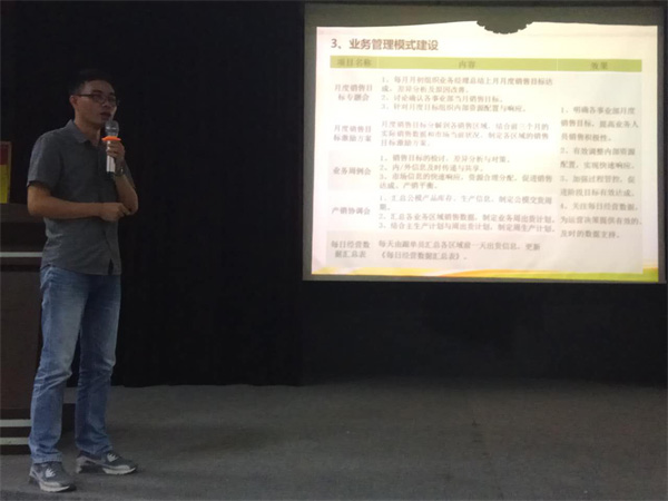 远大方略项目组咨询师王艺老师谨代表参于过凯晟管理变革的项目组老师们作了总结发言。对凯晟一年多的管理变革进行了深刻的总结以及对凯晟下半年的工作规划作出郑重的表态。