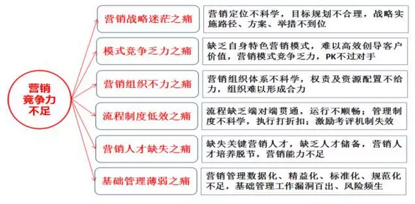 对于制造型企业,营销管理没有做好,往往会导致企业产生六大痛点: