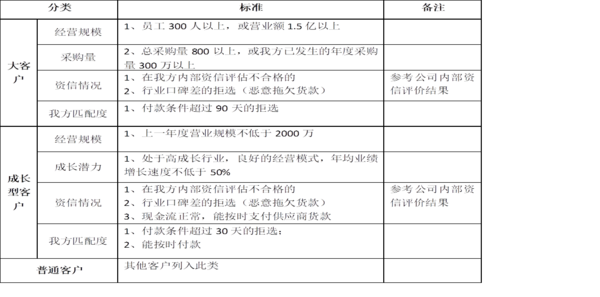 (4)建立YHD公司客户分类分级标准,具体标准如下: