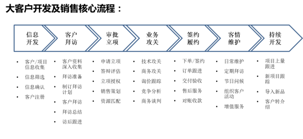 (6)实施销售过程标准化,组织营销团队编写《大客户销售SOP手册》、《普通客户销售SOP手册》,并以此训练销售团队,实现人才复制。