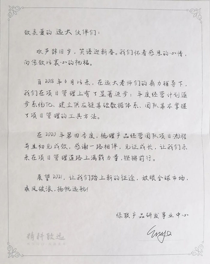 ▲绿联科技至远大方略的感谢信