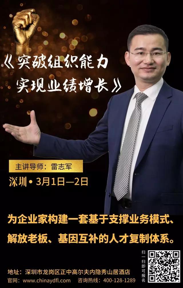 如果您认可“先人后事”的理念,或者想进一步了解企业核心圈构建、人才营盘打造、人才生产线建立等相关内容,欢迎参加远大方略联合创始人雷志军导师3月1日、2日在深圳的《突破组织能力,实现业绩增长》的组织突破专题课,我们一起探讨,相互交流,期待您的光临。