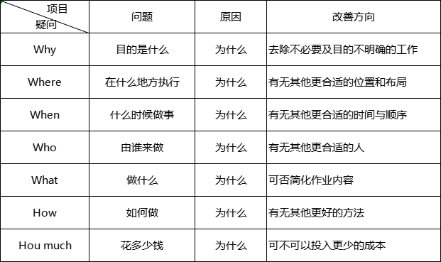 为了分析时能够收集到更多的意见,且不会有任何的遗漏,可以设置以下提问项目逐项进行提问,并进行客观的解答。如表所示: