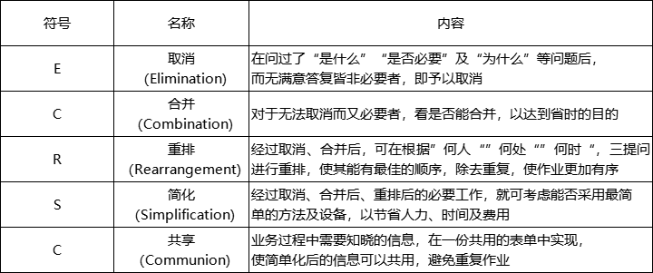 对现有的工作方案进行考核分析的目的是为了建立新的工作方法和新的工作秩序,这样就要求改善工作打破传统的工作方式,灵活运用以下五大原则对现行的工作方法进行革新。如表所示: