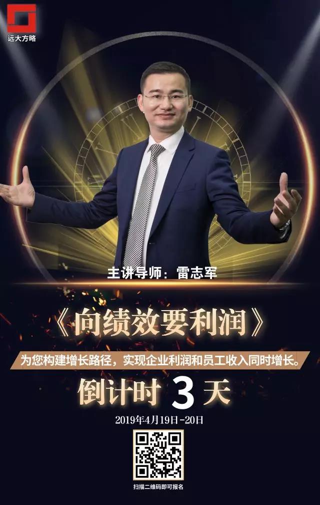 如果您想进一步学习如何驱动绩效四轮来实现企业利润增长?如何在绩效推行中激活员工?欢迎走进本周(4月19日—4月20日)由雷志军老师主讲的《向绩效要利润》的课程现场,您将会得到系统的答案。
