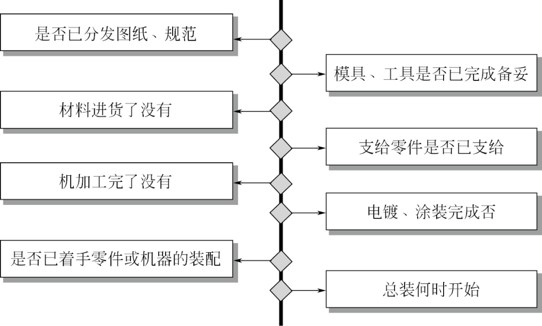(1)查核的时机。采购方在订购产品后,应主动监督供应商备料及生产,不可等到已逾交期才开始查询。所有的产品几乎不可能在交货日期一次制造完成,因此,未能准时交货的情形通常都发生在此前的生产过程中,其计划进度与实际进度发生偏差所致。所以下订单后,采购方要积极地进行查核。查核的目的是在尚有余裕时间可以想办法时确实掌握生产状况,以便采取必要行动。