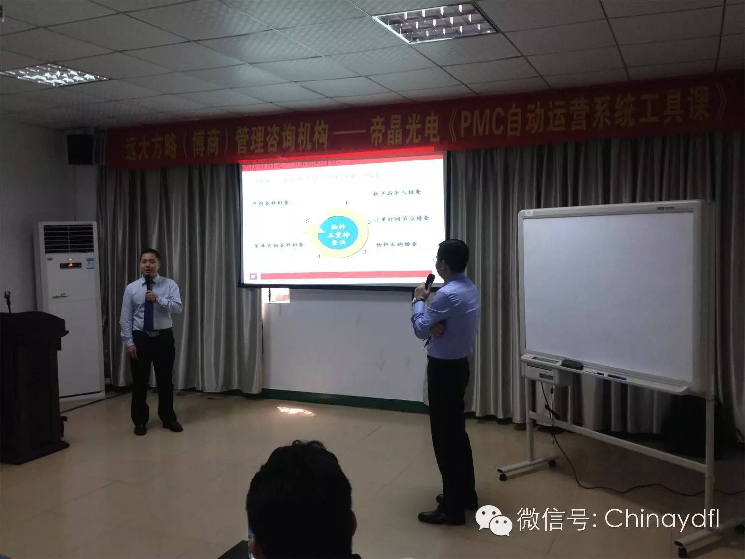 雷志军老师与刘再强老师在详细讲解物料五重排查法以及物料齐套管理困难后果