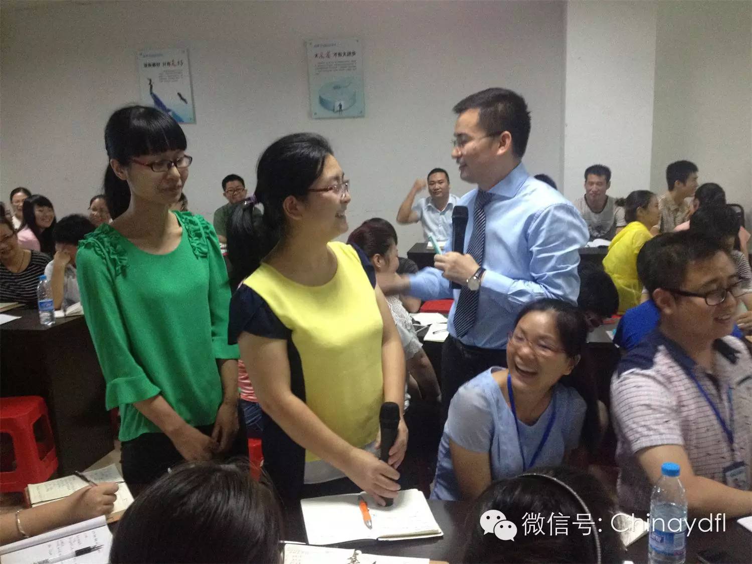 雷志军老师与凌雪飞老师在讲解管理工具的有效运用内容,并与小组成员互动