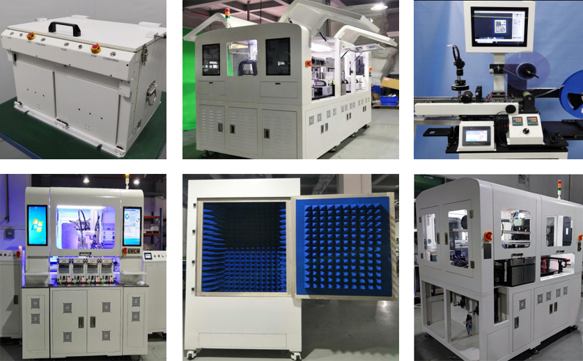 公司产品分为屏蔽箱系列和自动化系列两个模块,包括2.4G/5.8G、5G毫米波等厂测与实验室测试用各类RF/AF手/自动、屏蔽隔音箱和混响室;及以无线产品自动测试为主的四轴无线模块自动测试机、直线运动模组型自动测试机、智能视觉编带机、PCBA自动贴标机、鼠标自动测试ATE、无线IC模块自动烧录测试一体机、CCD视觉自动筛选分拣机等。