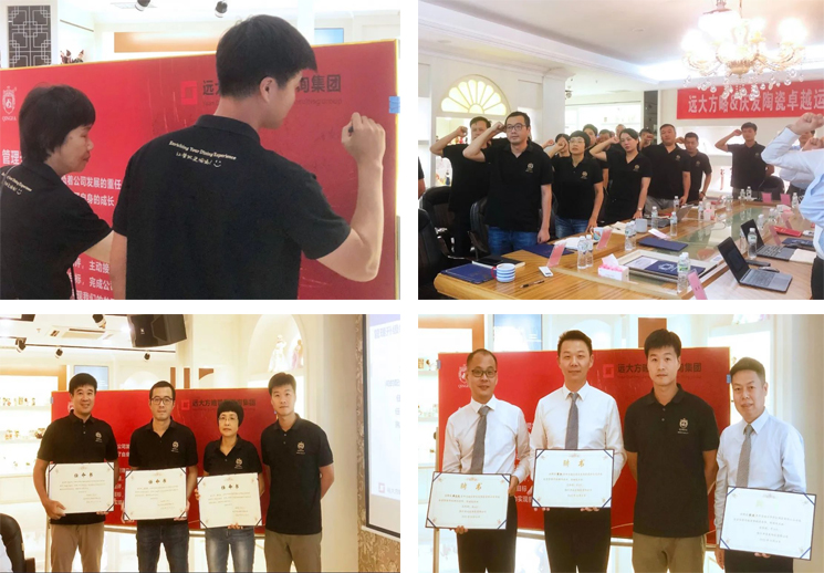 会上,蔡总颁发聘任书和授权书,聘任项目组老师为庆发陶瓷管理升级特聘顾问,为公司各部门负责人颁发了聘书,带领大家在宣誓词签字并进行集体宣誓,鼓舞公司全员参与变革。
