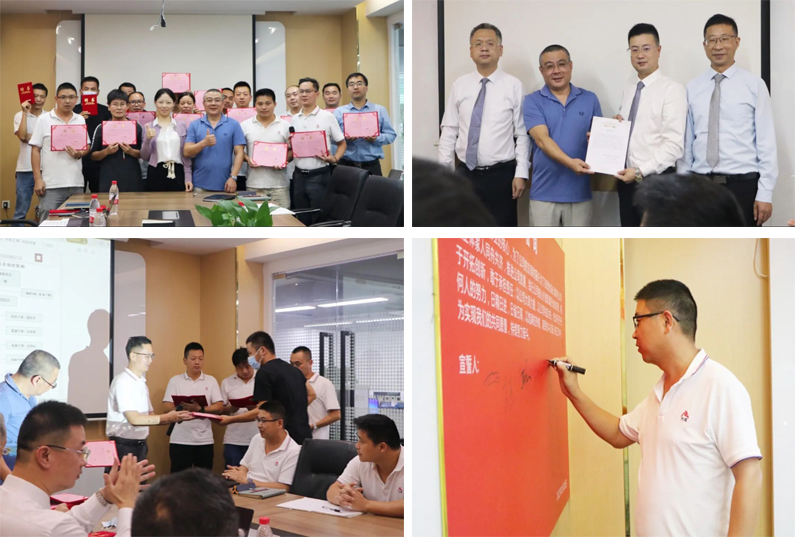 会上,公司高层为项目老师和项目小组负责人分别颁发了授权书与任命书,带领大家集体宣誓,鼓舞大家全力投入变革,促成企业、员工、客户的共赢。