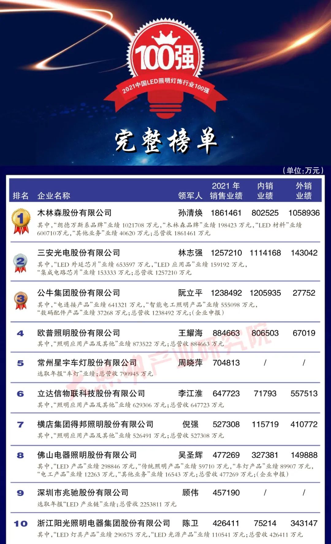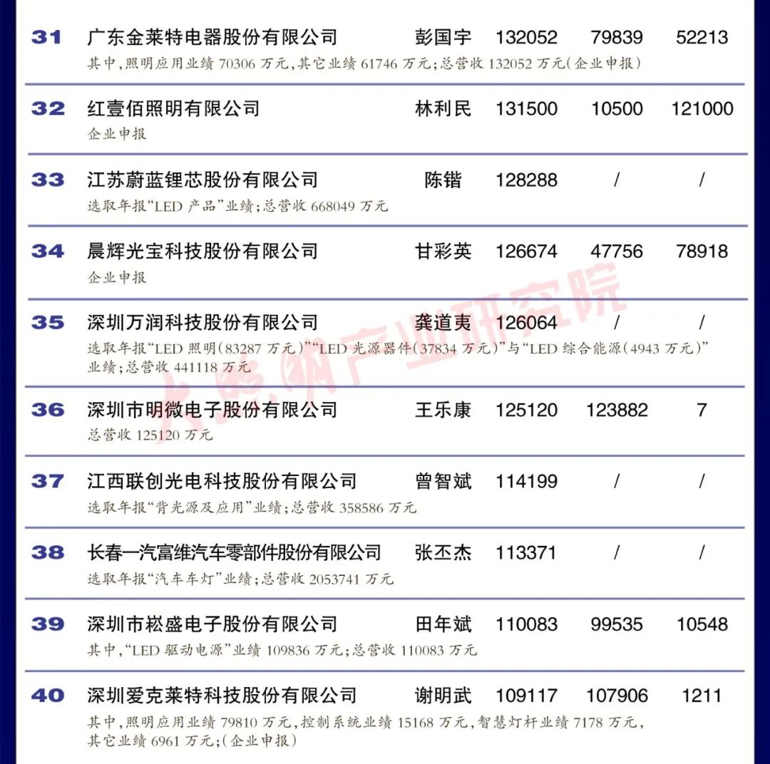 从销售规模来看,中国led灯排行榜中有3家企业销 售突破100亿元,有4家企业销售在50 100亿元之间,有35家企业销售在10-50亿元之间,有35家企业销售在5-10亿元之间,余23家企业销售在5亿元以下。