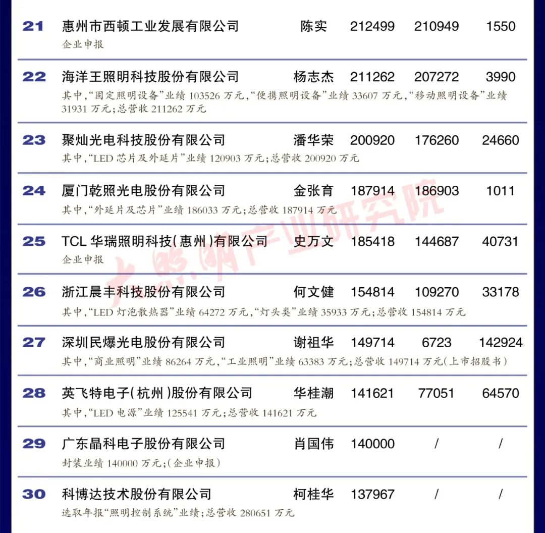 2021年中国照明灯具排行榜显示,上榜100强企业2021年总销售业绩为1791.2亿元,同比上年降低了240.67亿元;百强企业入围门槛为2.45亿元,同比上年降低了0.08亿元。