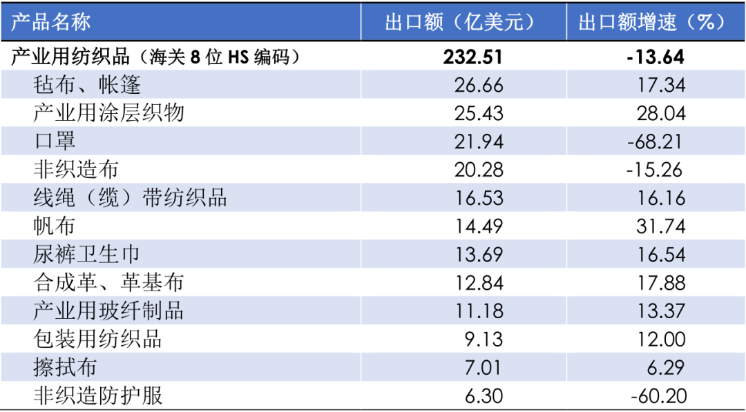 注:自2022年1月1日起,产业用纺织品行业中部分商品海关编码有所调整,由于缺少同口径同比数据,故本期发布的行业进出口同比增速数据仅供参考。