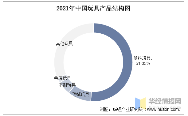 我国是全球最大的玩具制造国,在世界玩具市场上占有举足轻重的地位。从材质上看,塑料玩具是我国玩具市场第一大细分品类,2021年塑料玩具的市场份额约为51.05%。