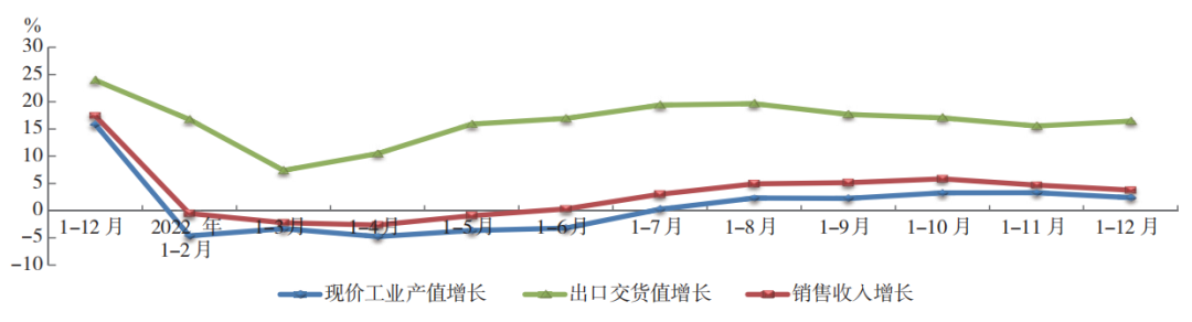 2022年,橡胶行业现价工业总产值增长2.37%,增幅减少13.50个百分点。