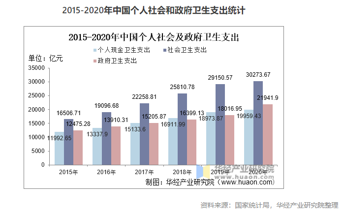 近年来,我国医疗资源不断丰富,医疗技术水平不断提升,卫生支出总体呈上升趋势,2020年全国卫生总费用预计达72306.4亿元,占GDP百分比为7.12%,个人卫生支出为2万亿元左右。社会卫生支出大概3万亿元,政府卫生支出2.2万亿元。卫生支出费用持续增长,医药制造行业需求市场发展空间广阔。