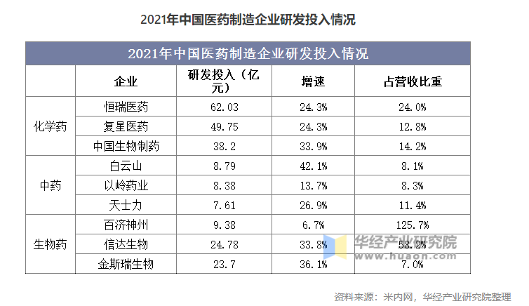 随着药品审评审批制度改革、国家医保常态化调整等政策改革,“创新”逐渐成为药企的发展理念。化学制药行业正在发生结构性变化,随着仿制药出现药品价格持续下降的同时,行业集中度也有望提升;中医药行业政策利好不断,相关部门从市场准入、医保支付、审评审批等多个维度对中医药行业形成政策支撑,中药原材料价格上涨对企业决策也造成一定的影响;生物药虽然起步晚于化学药,但近年来却受全球药企热捧,成为药企和投资者竞争的新方向,研发投入力度较大。