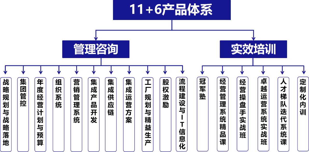 并开展各类经营管理系统精品课、操盘手实战班、卓越运营实战班和定制化内训,打造学习型企业组织,培养拥有超强竞争力的组织团队,搭建企业人才梯队,助力企业在风云骤变的市场竞争中脱颖而出,实现基业长青。