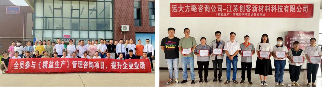 创客新材与远大方略合作咨询项目,建立全员精益思维,变革生产管理方式,进一步提升效率,将专业化细分领域市场做到极致。