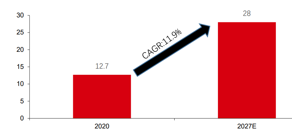 △2027年国内军用电源市场规模(单位: 亿美元)