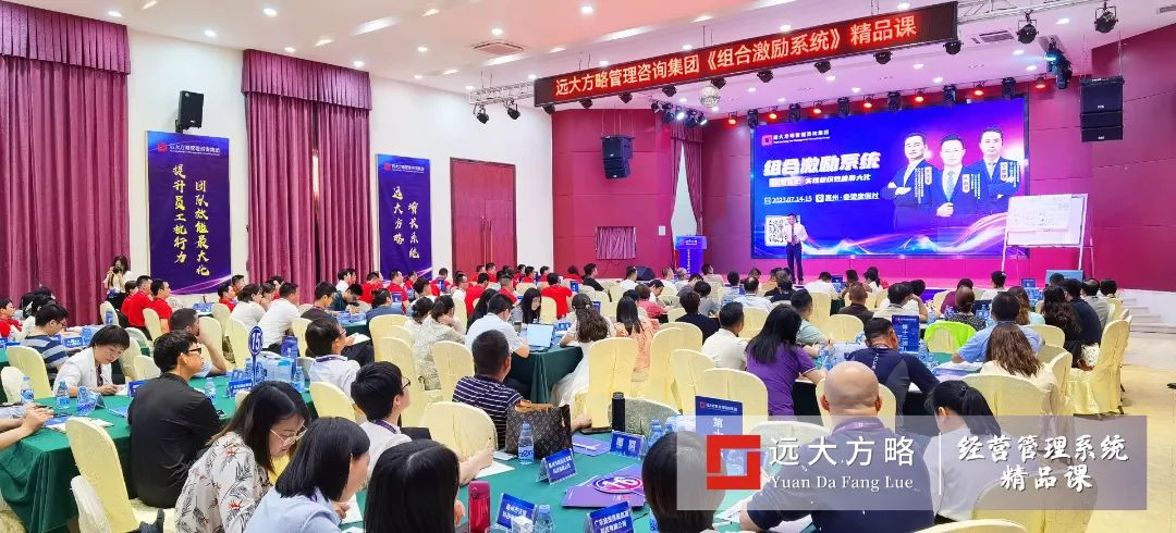 7月14日由远大方略举办为期两天的《组合激励系统》精品课于惠州泰荣度假村举行,本次课程由远大方略营销人力资源咨询总经理、组织系统建设实战老师姚南洲以及人力资源管理实战老师罗蛟腾两大实战导师联袂授课,助力企业有效激活员工,提升人均劳效,实现企业增利、员工增收的目标。