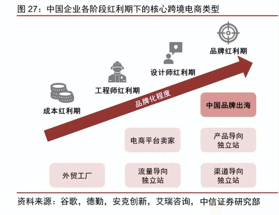 早期,凭借国内的劳动力优势,中国制造的高性价比产品快速打开海外市场,但也带 来了消费者价格敏感、用户粘性及心智较差等问题。经过二十余年发展,随着我国跨境电商模式的逐渐成熟、产业链布局的逐渐深入,以及行业竞争的日益激烈,国内跨境电商卖家正在实现从中国制造到中国品牌的升级,以提升消费者心智并强化议价能力。