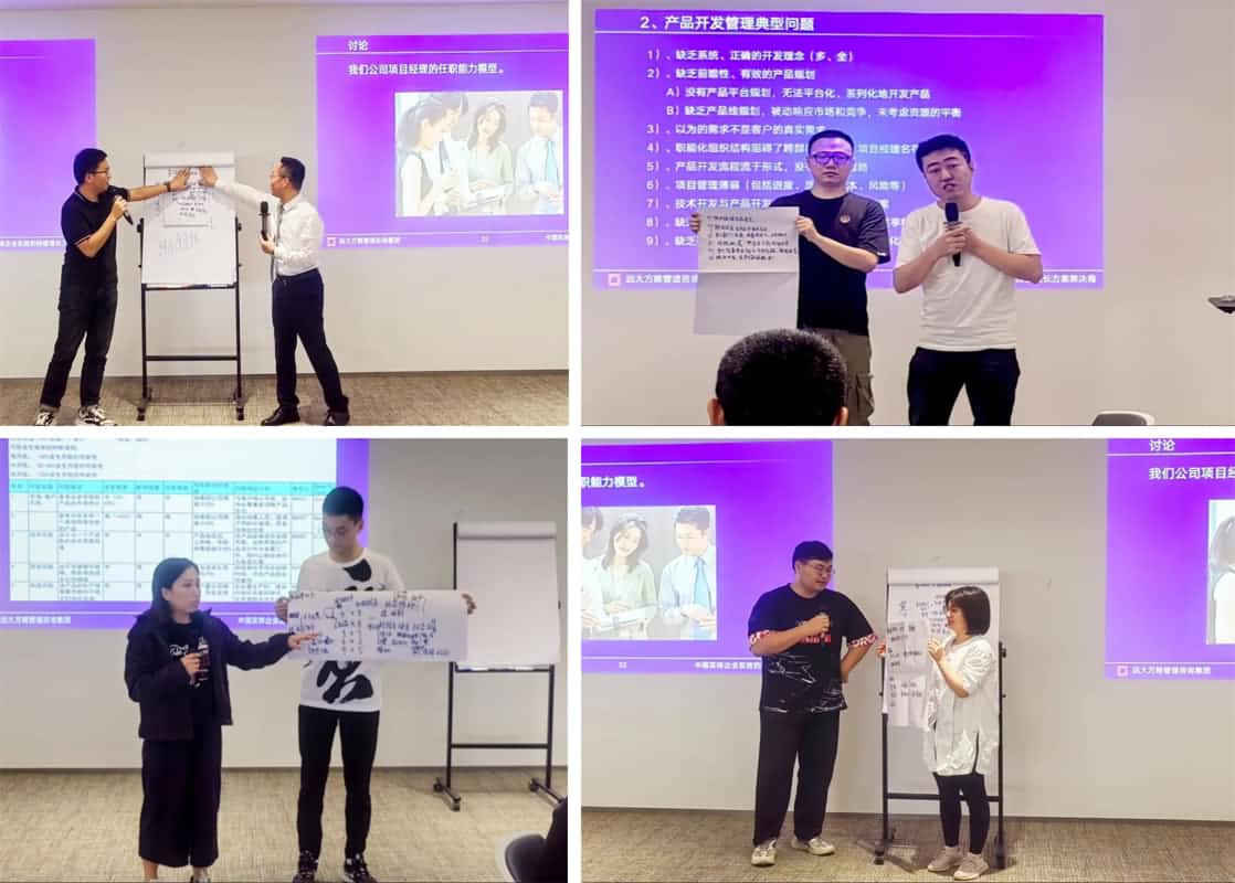 老师结合万家乐所在行业发展特性,通过“厨房电器定制化项目案例”实践,阐述了什么是定制化项目管理。为大家详细讲解了“5过程×10模块”项目管理知识体系,并结合学员工作经验,现场重新演练曾经成功/失败的项目,学以致用链接知识框架。