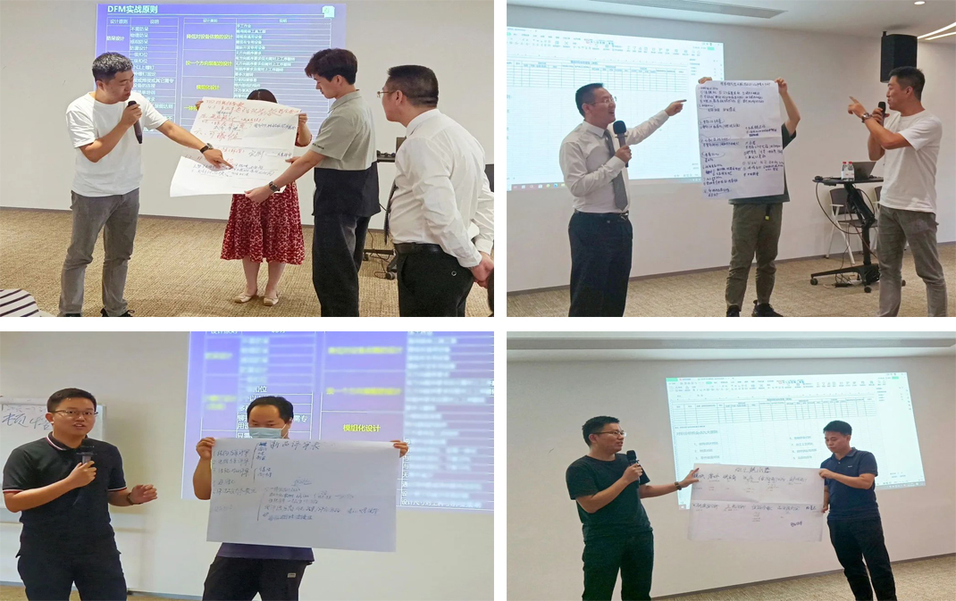 课程还运用企业落地实践案例,讲解了产品设计8原则、零部件设计6原则、设计效率和品质提升要点、爆款降本作战流程、项目实施-CDOC/31518原则等,帮助学员在设计中颠覆传统思维,围绕市场、制造痛点、经营改善等,从工艺突破、可制造性、标准化等维度拉通全价值链形成沉淀,实现从源头开始的改善提升。