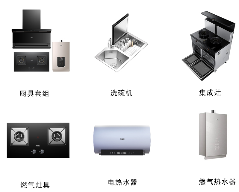 公司产品覆盖热水、厨电、净水、采暖四大品类。包括热水器、油烟机、燃气灶、洗碗机、集成灶、净水器、壁挂炉等。