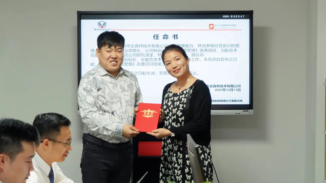 会上,吴总为项目老师颁发授权书,授予项目老师项目管理权利,同时为公司项目团队成员颁发任命书,明确职责,强化责任,确保项目的有效落地。