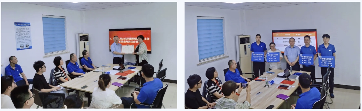 会上,张总还为项目组颁发授权书,同时为项目改善小组颁发任命书,明确目标,落实责任。最后,参会全体人员进行宣誓,坚定变革决心,全力推动改善,助力企业高质量发展。