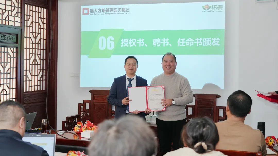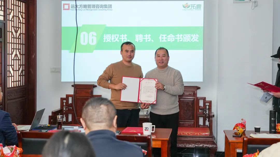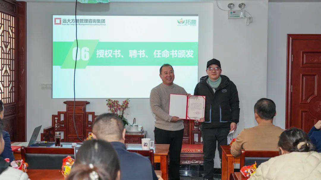 为了进一步加强项目组的权威性和执行力,拓丰朴道领导为远大方略项目组颁发了授权书,授予老师项目管理权,同时,还为拓丰朴道项目组成员颁发任命书,明确了各成员的职责与使命,进一步强化了项目团队的执行力和领导力,为此次项目改善提供了有力的组织保障。