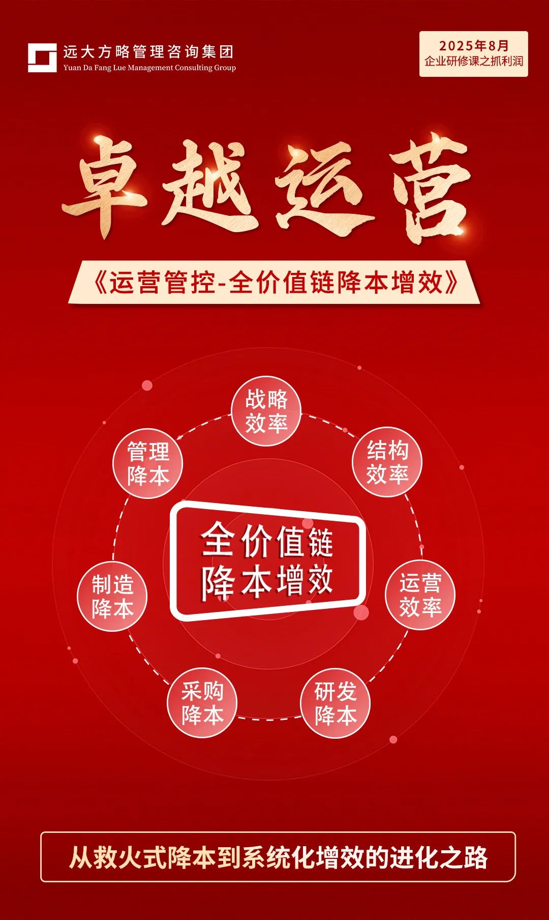 报名通道已开启!8月21日-23日《运营管控-全价值链降本增效》企业研修课
