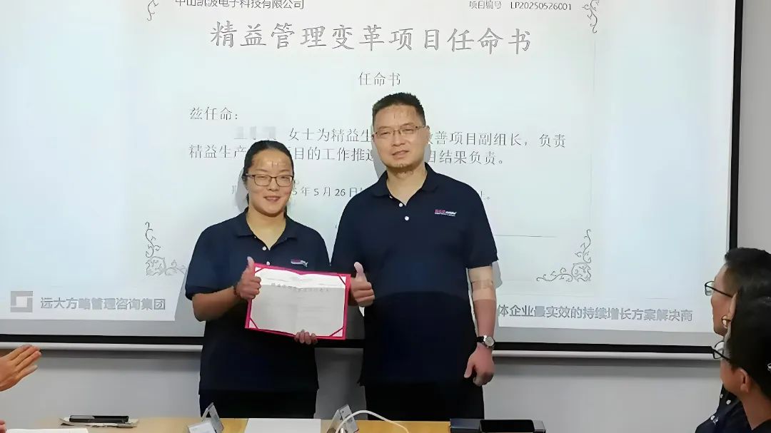 近日,中山凯波电子科技有限公司(以下简称“凯波科技”)携手远大方略启动《精益管理》咨询项目,帮助企业建立全员精益思维,搭建科学合理的精益管理体系,内部运营实现标准化、规范化、流程化以及制度化,提升企业整体效率,实现人效、利润与产值的持续增长。